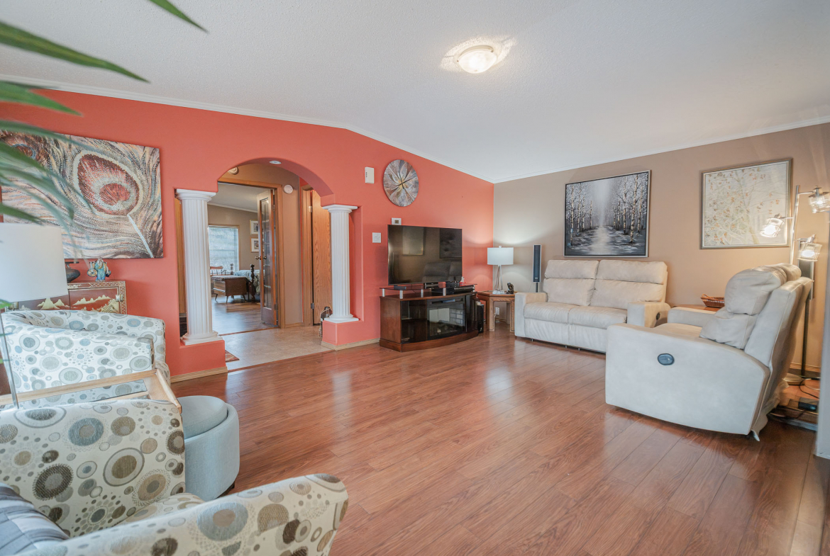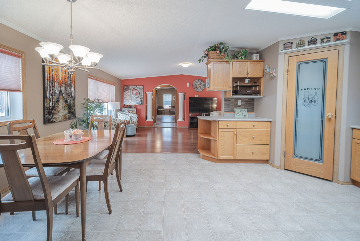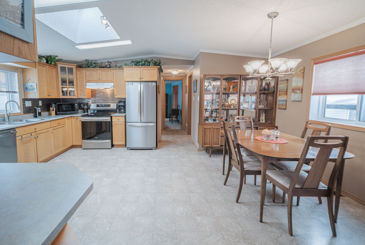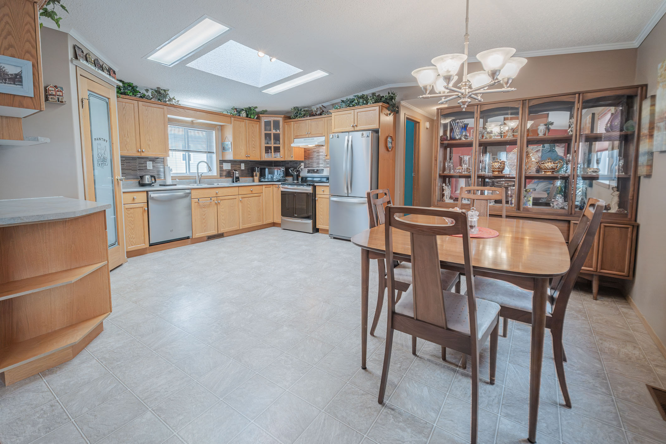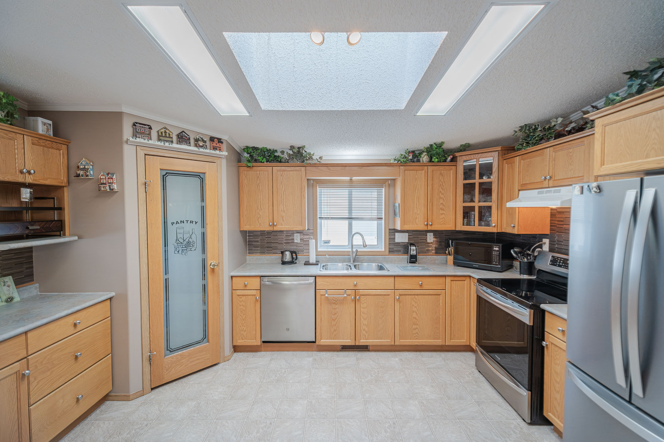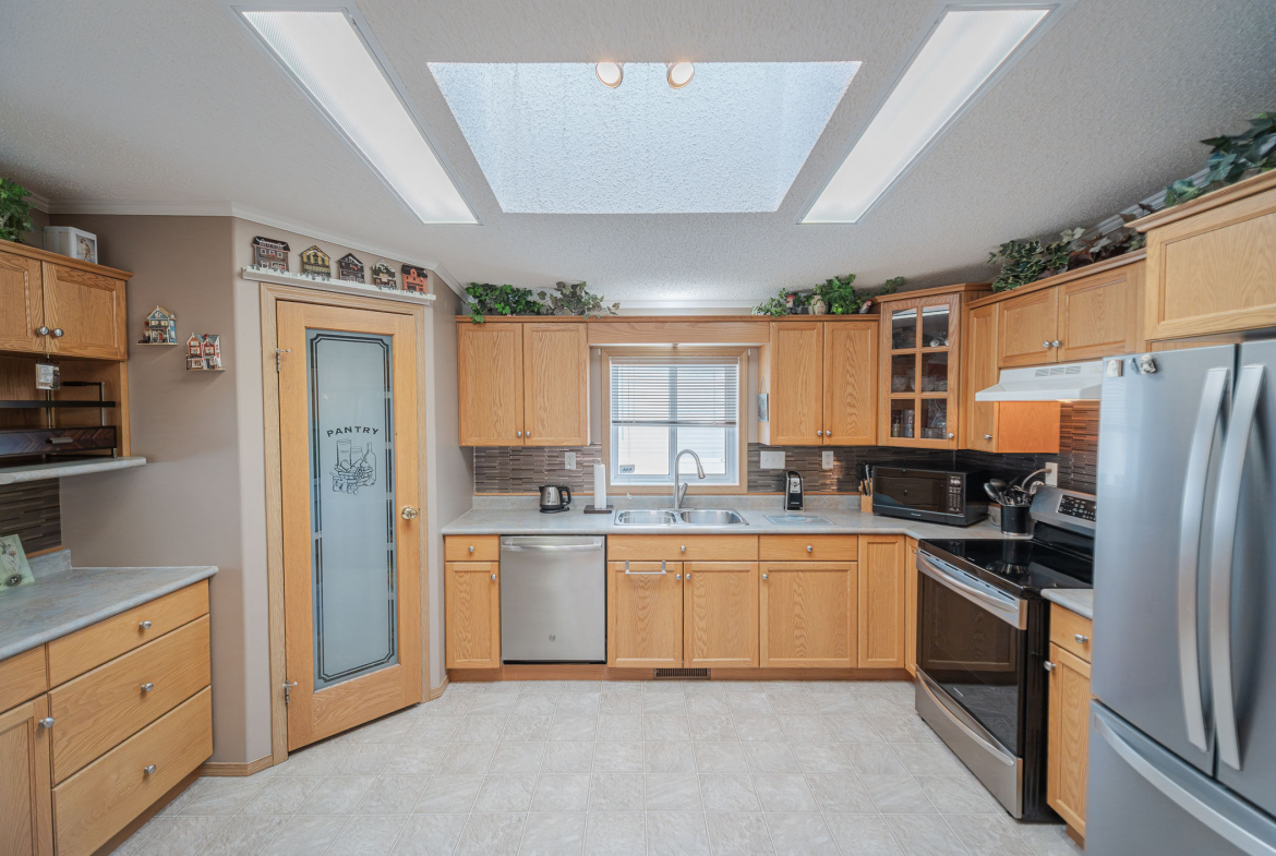Custom built in 2009 by Grandeur, this 1,520 sq.ft., 3-bedroom modular home offers a bright, open floor plan designed for comfortable, low-maintenance living. The oak eat-in kitchen features skylights and a corner pantry, while the spacious primary bedroom includes a 4-piece ensuite and walk-in closet.