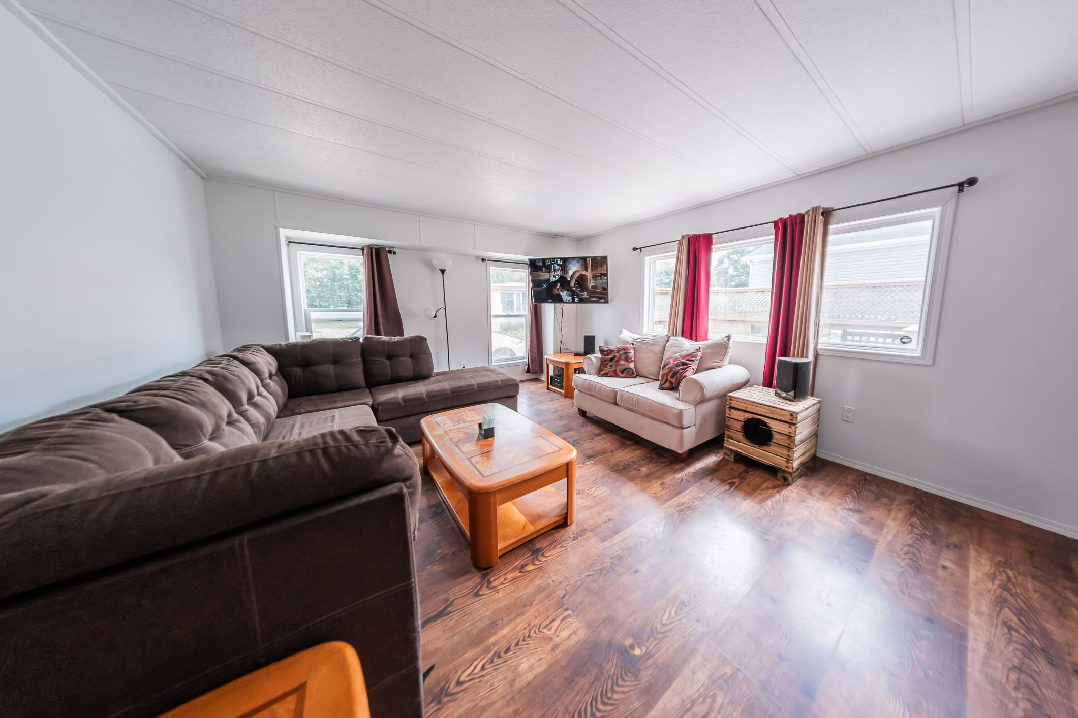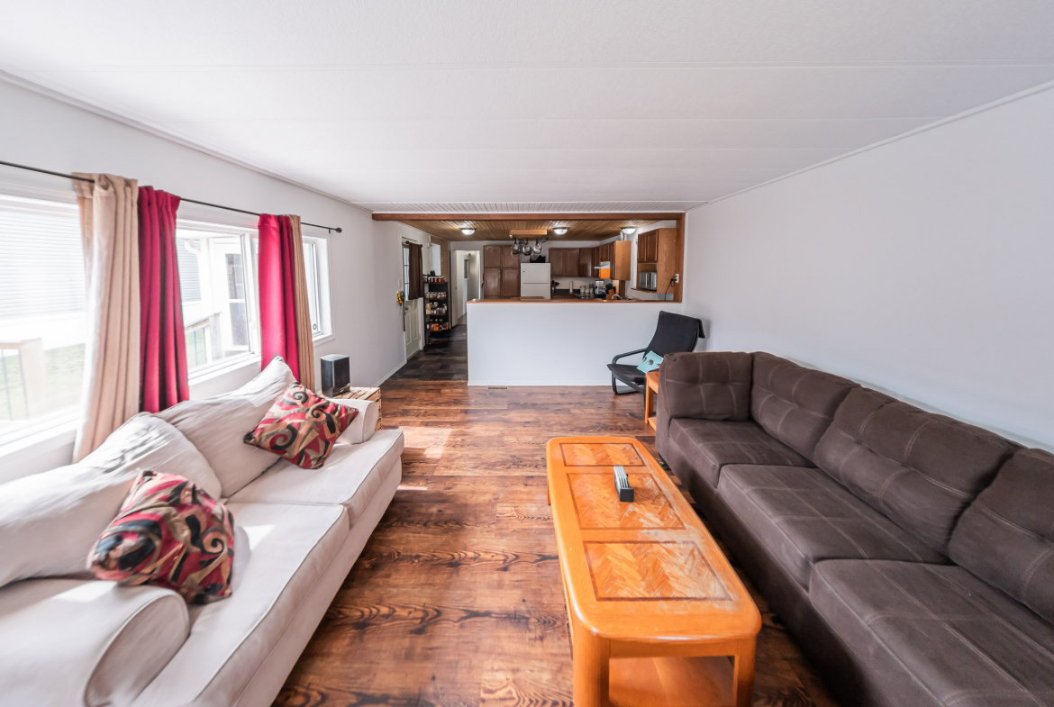 This mobile home offers 4 bedrooms and 1,180 sq. ft. of space, this home is filled with natural light and designed for comfort. The large living room with east and south exposure overlooks a large sunny deck, while the newer oak kitchen with Pine ceiling features plenty of cupboards, counter space, pantry , lazy susan and a butcher block island. A spacious dining nook makes entertaining easy, and the updated 4-piece bath adds modern appeal. Outside, enjoy a good-sized yard with a fire pit, back deck, and storage shed. With appliances included and lot rent of just $532/month (covering taxes, water, garbage, and snow removal), this is an affordable opportunity with features rarely found at this price.